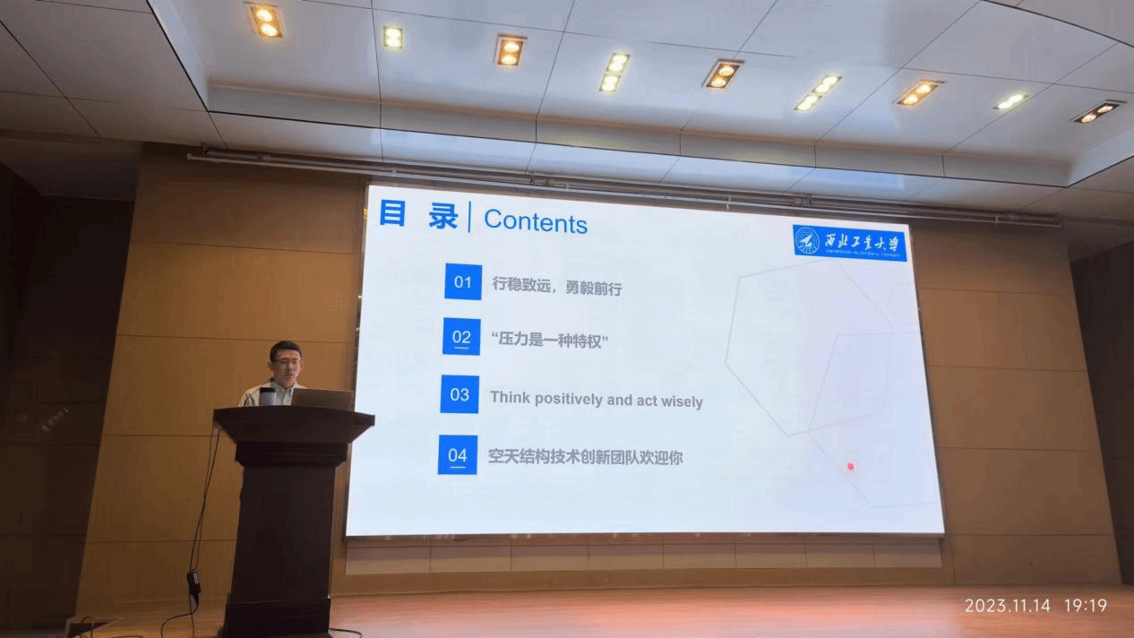 机电学院副教授孟亮做《一纸信笺传火种,空天桃李成栋梁》专题报告