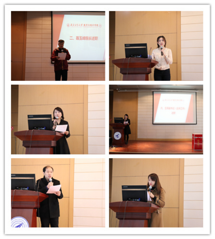 首先,王彦革详细介绍了学校对五、六级领导人员述职的工作要求。领导班子全体成员聂玉峰、王莉、都琳、徐根玖、张莹依次从个人思想情况、主要工作思路及业绩、存在的问题以及下一步工作计划三个方面做工作述职报告。同时,领导班子全体成员在述职述责述廉中按照学校有关要求,对照集中整治问题进行了报告,接受全体教职工的评议和监督。全体教职工对学院领导班子进行测评投票。