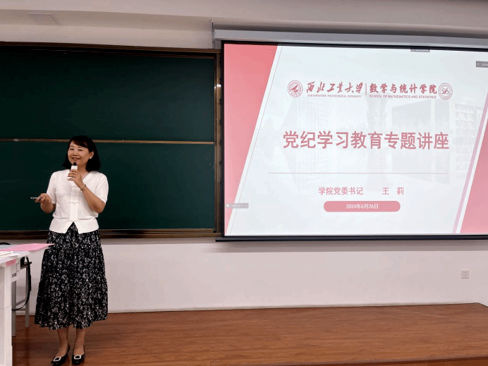 随后,王莉开展了师德师风教育并通报了警示教育典型案例。她表示,新时代的教师既要坚定立德树人的理想信念,又要树立躬耕教坛的宏伟志向,做塑造学生品格、品行、品味的“大先生”,把师德师风建设放在提高教师队伍素质的首要位置,为加快建设教育强国贡献数学智慧与力量。