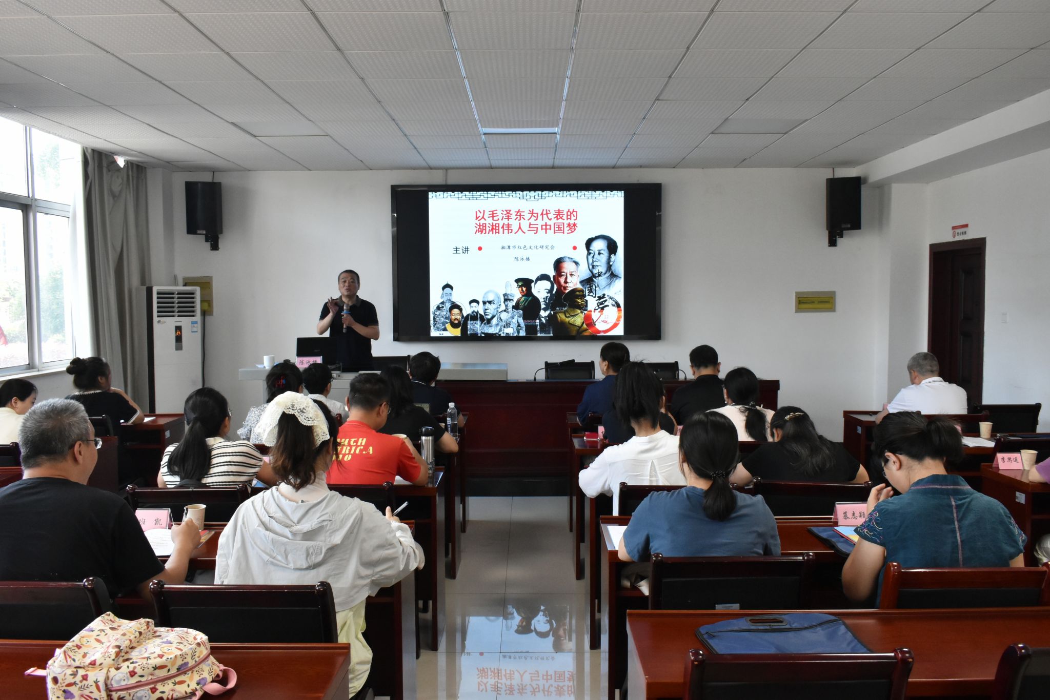 王莉在培训班开班仪式的动员讲话中提纲挈领地明确了此次教育培训的目的与意义,旨在追寻红色足迹,重温革命历史,接受党性教育,传承革命精神。中共湘潭县委党校副校长王耀,以《深入学习贯彻中央八项规定精神,持续加强党的作风建设》为题讲授专题党课,紧扣新时代全面从严治党要求,为学员们划出纪律“红线”。陈泳播教授为全体学员讲授了《以毛泽东为代表的湖湘伟人与中国梦》的专题党课,详细介绍了近现代史上湖湘地区的一代代优秀前辈们在追寻国家独立、民族解放之路上所做的艰辛探索和不懈努力,并详细阐述了毛泽东思想和以毛泽东为代表的共产党人对中国革命的影响,以及共产党人追寻中国梦的伟大历程。