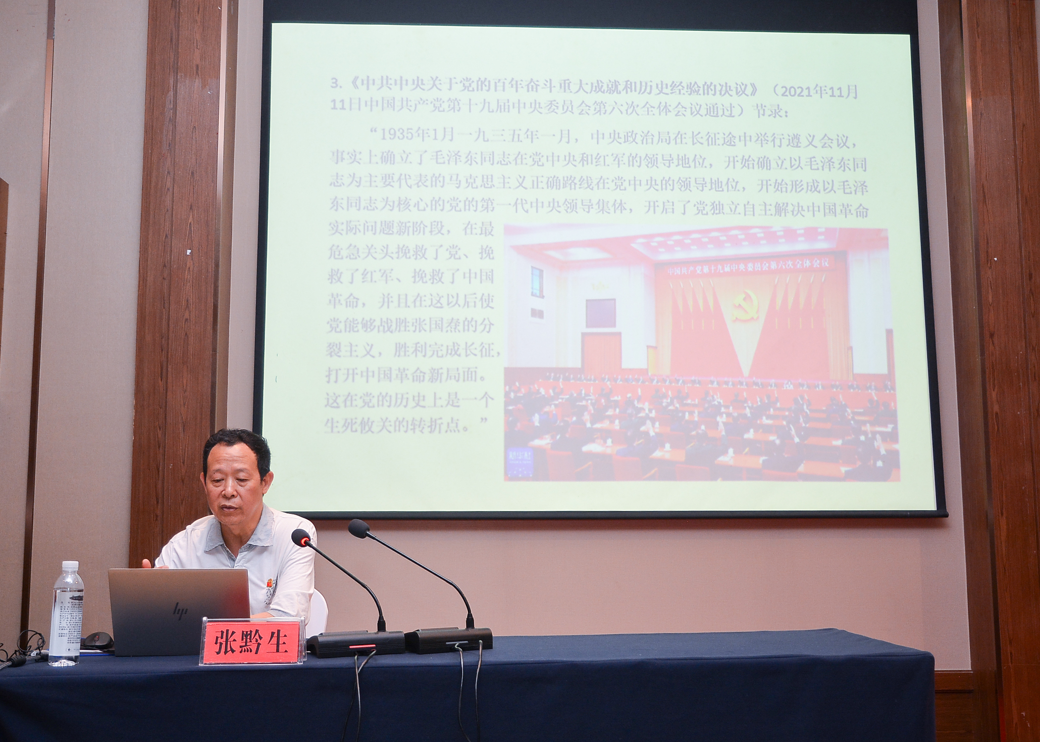 7月31日,全体同志出席开班仪式,党委书记王莉在会上作了动员讲话。她强调了本次活动组织的目的和意义,并对后续的行程安排做了简单介绍,希望大家认真学习,勤于思考,将本次所学所得用于平日工作中,为学院发展建设多做贡献。在活动安排的第一场专题教学课上,中共遵义市委党史研究室原主任、中共绥阳县委党校特聘教师张黔生同志讲授了《遵义会议与遵义会议精神》。他从遵义会议的历史功绩与伟大意义、遵义会议的大背景、遵义会议的召开情况等方面全面详实地介绍了中国共产党历史上这一具有伟大转折意义的重要会议,语言幽默,深入浅出,使参会全体同志深受启发,对遵义会议为什么是在最危急关头挽救了党、挽救了红军、挽救了中国革命有了更深刻的认识。
