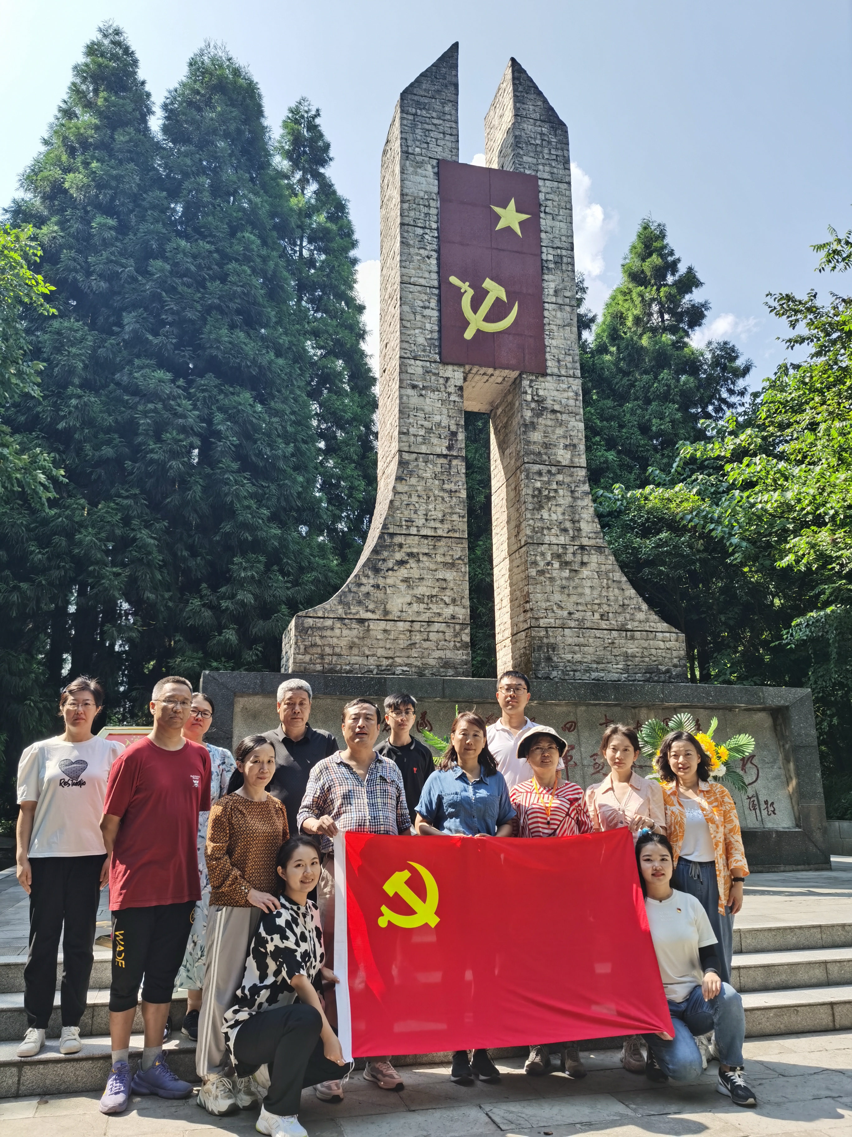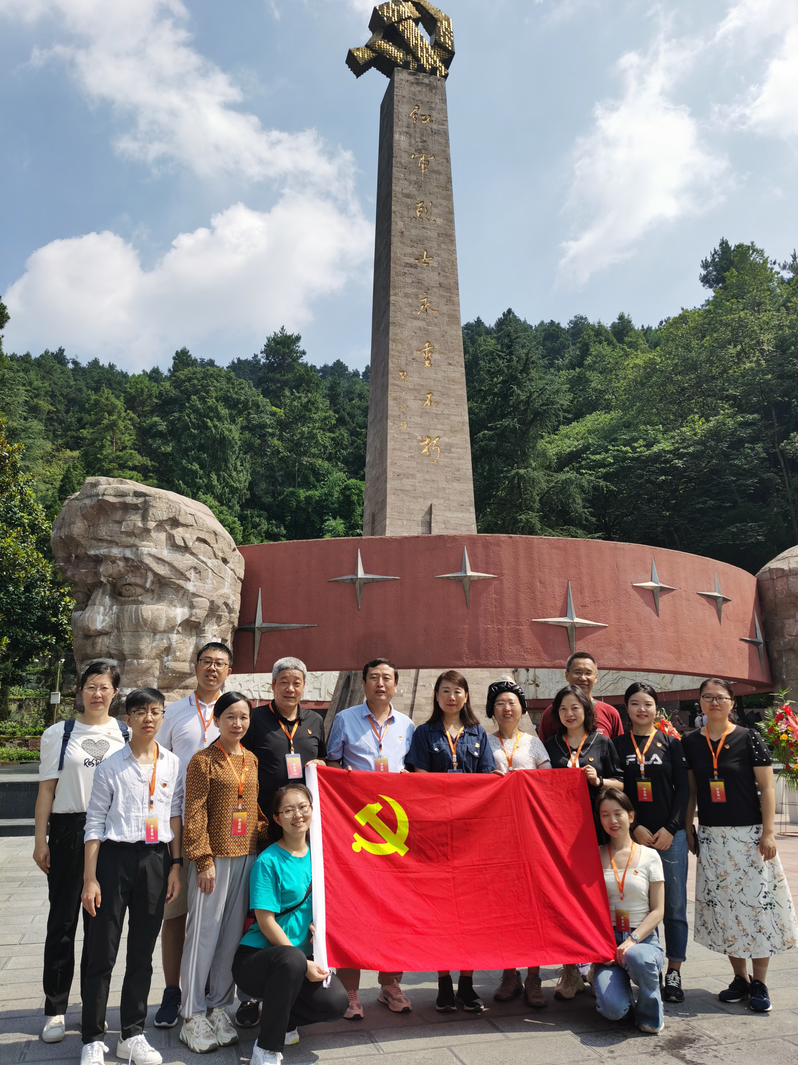 在瞻仰红军烈士纪念碑时,全体教工党员在党委书记王莉同志带领下重温入党誓词并敬献花篮。纪念碑正面由邓小平同志书写的“红军烈士永垂不朽”以及烈士们当年可歌可泣的英雄事迹无不令人动容,为共产主义事业奋斗终身的理想信念更深深地镌刻在每个人心中。
