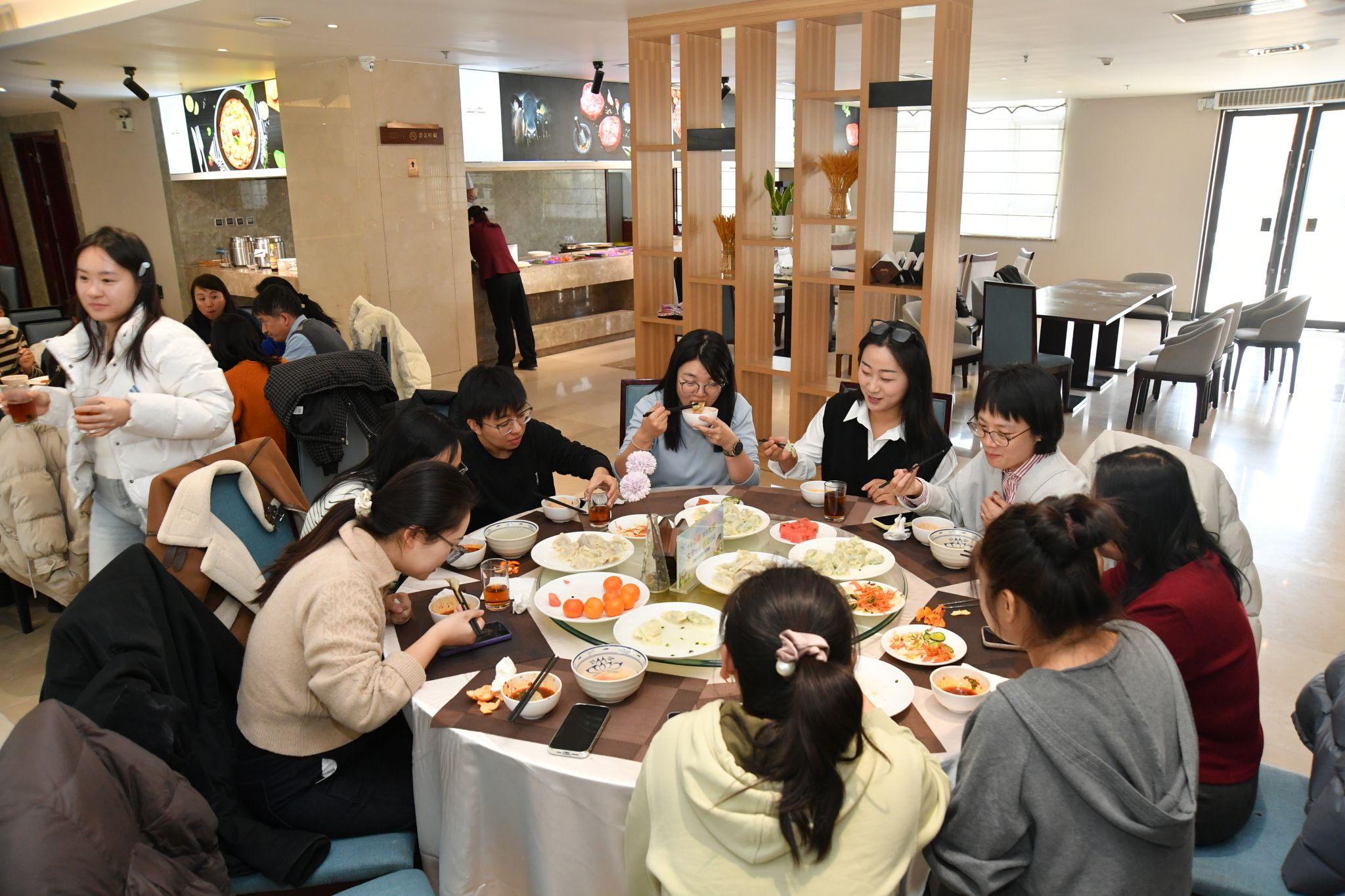 随着一盘盘热气腾腾的饺子端上桌,大家围坐在一起,品尝着自己亲手包的饺子,感受着冬至团圆的温馨。鲜香的馅料、温热的汤汁,不仅驱散了冬日的寒意,也使学院工会的关怀温暖了每个人的心房。