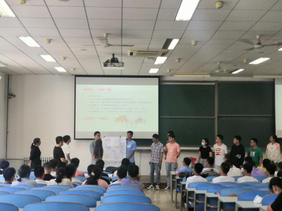 随后,王莉老师带着同学们开展了主题为《以终为始,不负青春,再启新程,载梦起航》的破冰活动。在王老师的组织下,学生们按照班级分成10个小团队,每个团队成员在白纸上画出手印,分别在手印的五指上写上自己的姓名、最突出的性格特点、最感兴趣的事情、最具竞争力的能力、大学里最期待的收获,并在纸上写出团队名称和口号。完成后每个团队依次上台展示。整个过程中大家都非常积极,同学们的欢笑声和掌声不断!展示中看到团队名称各具特色,有的数学味浓厚,有的富有诗意又蕴意不凡,有的紧扣国家对青年的寄托和期许。同学们的讲解也是特点鲜明,有的伴着家乡口音诙谐幽默地讲出,有的像解读一首诗般娓娓道来,充分展现出了成人片 大一新生的个性和风采!