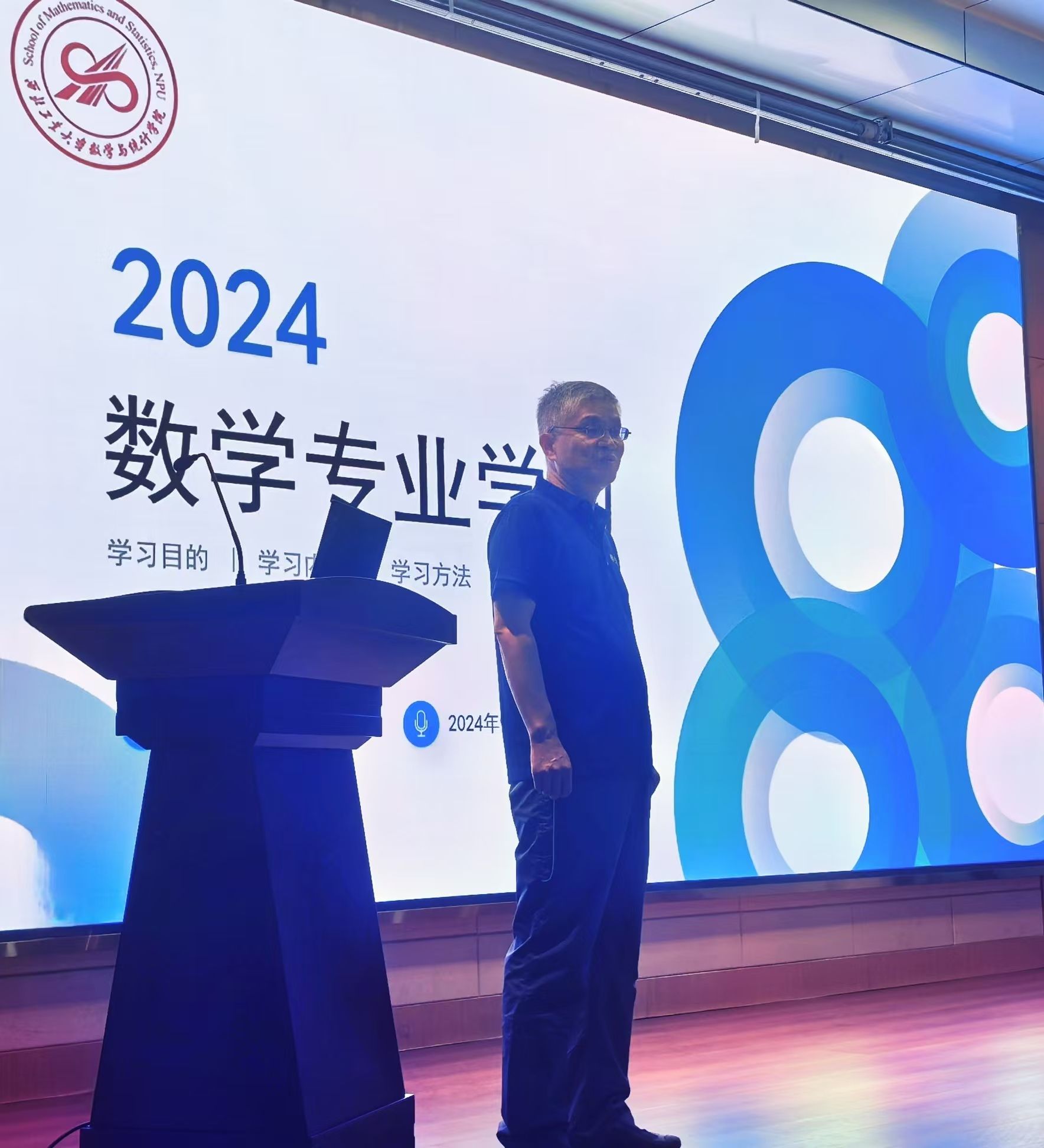 报告会上,聂院长主要从学习目的、学习内容、学习方法等方面展开陈述,内容丰富,事例生动。他不仅对同学们在学习阶段会接触的分析、代数、几何、随机、计算等五个方面内容进行了深入介绍,而且鼓励大家要勇于在软件工程、大数据处理、人工智能、量子力学、空气动力学等跨学科课程方面大胆尝试和探索,进而不断打好个人大学的学习基础,搭建好个人的知识架构。在谈到学习方法时,他引用了爱因斯坦、苏步青、华罗庚等知名学者的名言警句,引导大家在大学学习时,要学会边做边思索,具备一定的批判精神,善于用好学校、学院的各类优势平台,找到最终属于自己的学习方法,实现个人的学习目标。他也勉励同学们在大学四年生活中,争做有理想、敢担当、能吃苦、肯奋斗的新时代好青年,为学院发展和学校“127”目标的实现,不断贡献数学智慧和力量。