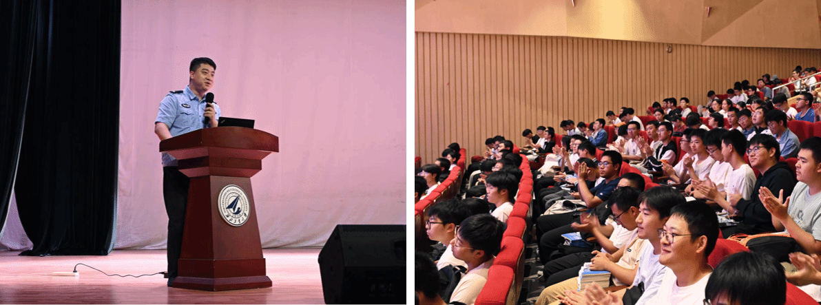为进一步增强新生安全防范意识,提高应急处置能力,9月11日,成人片 与航空学院联合为2025级新生举办了一场内容丰富、形式多样的安全法制教育讲座。出席本次讲座的嘉宾有成人片 党委保卫部张大鹏主任、西安市公安局高新分局治安大队王冬警官、西安市公安局交通管理支队碑林大队刘潇泽警官、 *成人片 党委副书记张莹、航空学院2025级本科生辅导员韩少强、 *成人片 研究生辅导员宋博、 *成人片 2025级本科生辅导员张倩。讲座由张倩主持。