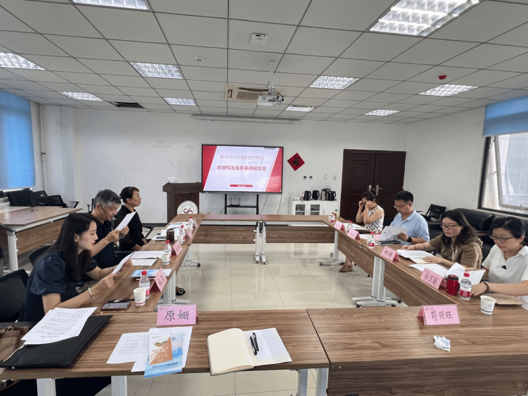 2024年9月13日上午,学校对外联络办公室主任杨铭、副主任徐伟侠、校友服务科科长郑婧、基金科科长孙卫丽一行四人来学院进行调研。 *成人片 院长聂玉峰、党委书记王莉、党委副书记张莹等参与本次会议,会议由王莉主持。