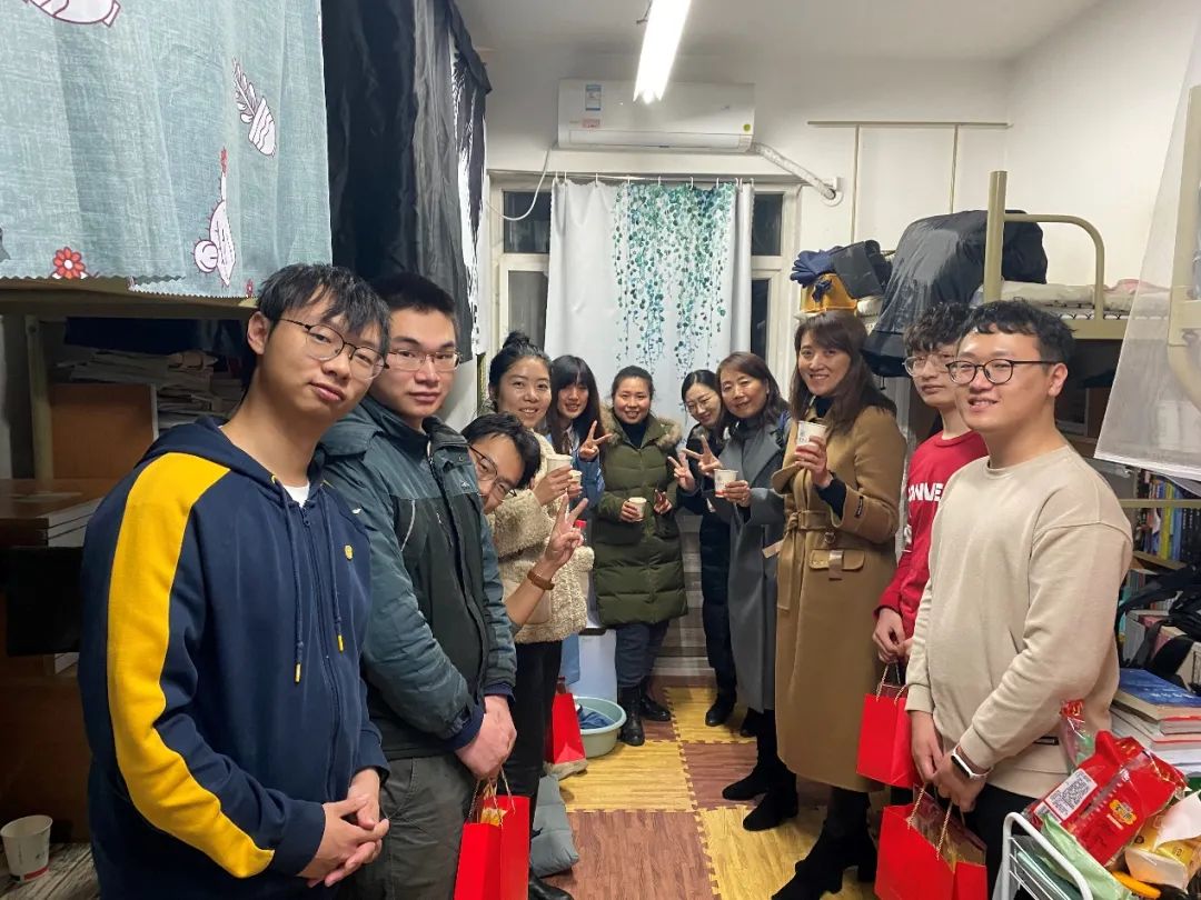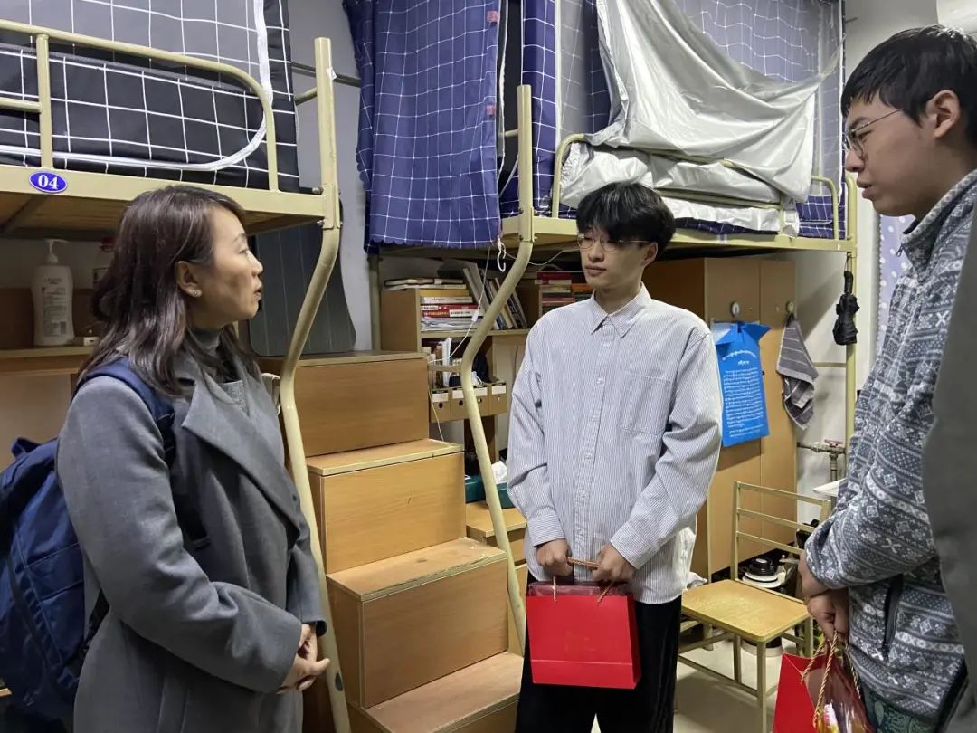 老师们带着慰问品走进同学们的宿舍,看望考研学子。王莉老师询问了同学们的复习近况,她表示,现在是考研最为关键的时候,大家更不能松懈,需要全力以赴,她期待大家取得自己满意的成绩。同时,她嘱咐同学们考试结束后可以尽快估分以便做好下一步准备。