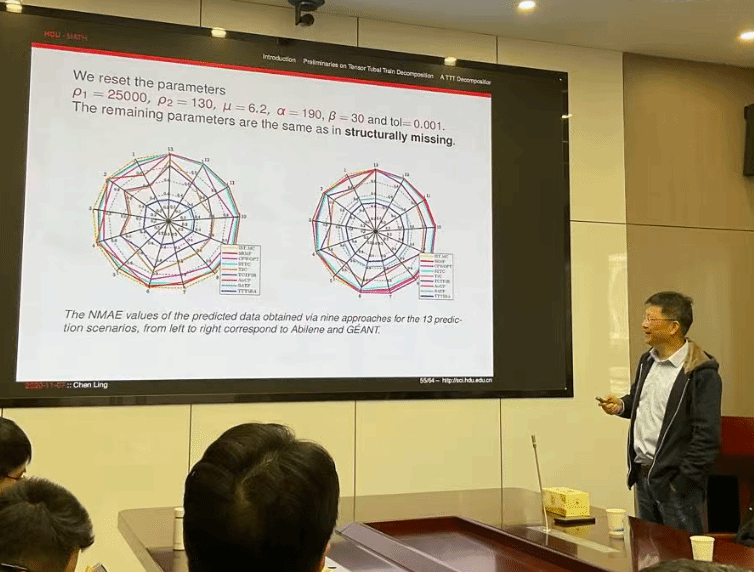 2025年11月25日上午,应 *成人片 白建超副教授和徐爽副教授的邀请,杭州电子科技大学凌晨教授在海天苑大楼E103做了题为《一种基于张量分解的互联网流量数据恢复与预测新方法》的学术报告。 *成人片 30余名师生参加了此次报告会,报告会由白建超副教授主持。
