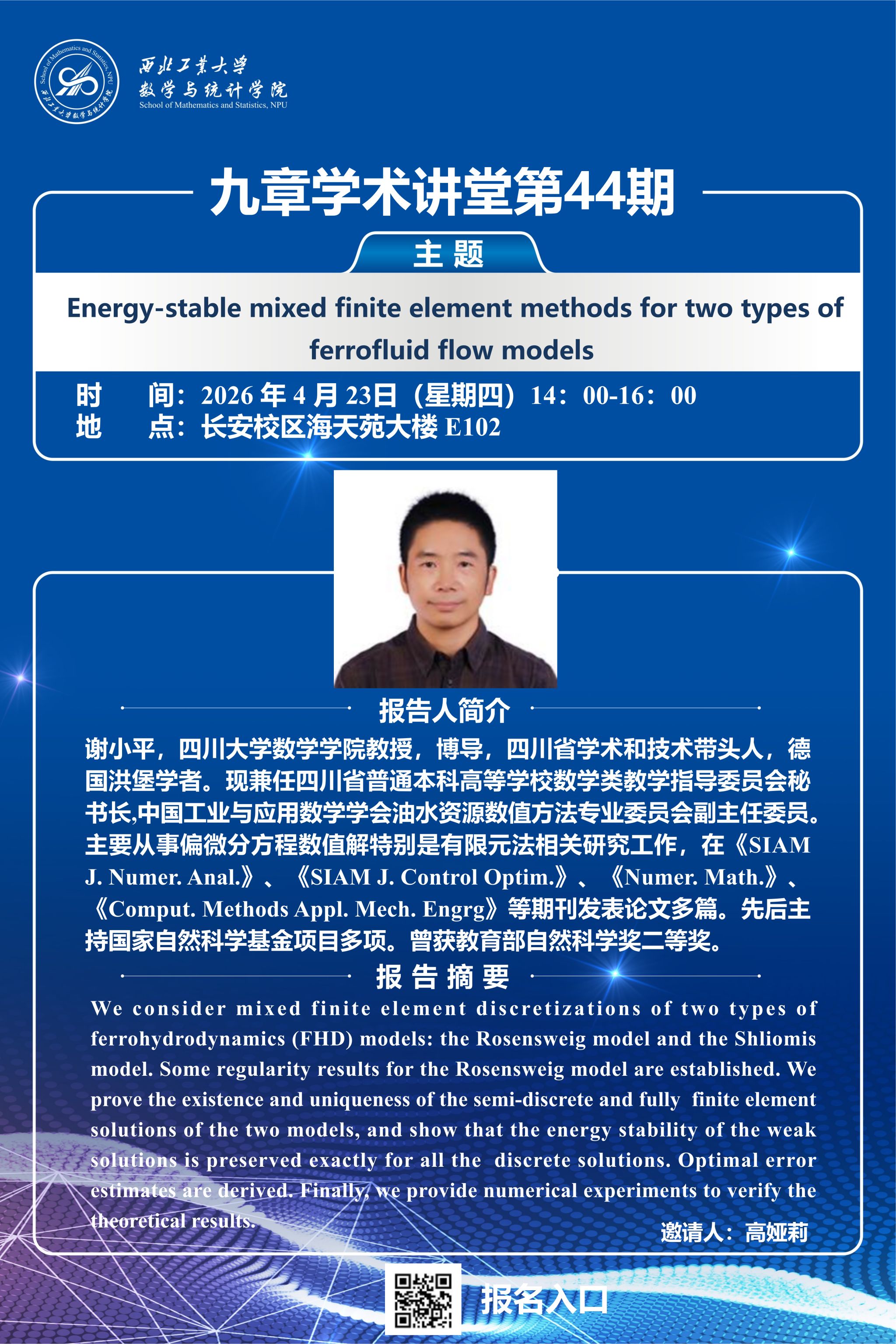 【九章学术讲堂第44期】Energy-stable mixed finite element methods for two types of ferrofluid flow models