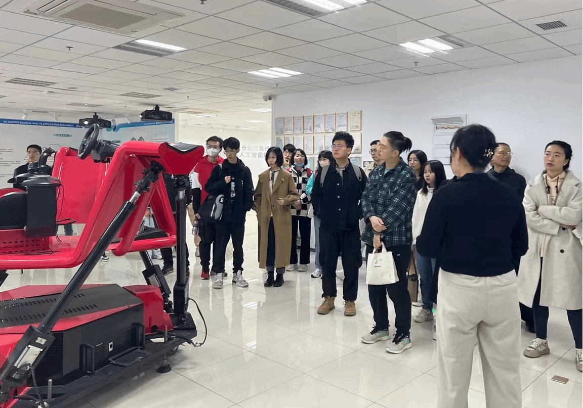 域圆科技对到访人员表示热烈欢迎,由人力资源总监徐戴组织参观了公司基础医学、护理助产、智能康复、智能中医以及急救等方面的智慧教育产品,并结合典型案例介绍了公司在AR/VR系统的技术运用。参与学生也纷纷对头盔沉浸式体验系统、AR互动台、多人全息交互系统、动作捕捉等多个产品进行了体验,并称赞了其震撼的视觉效果、自然的交互操作以及丰富的资源内容。