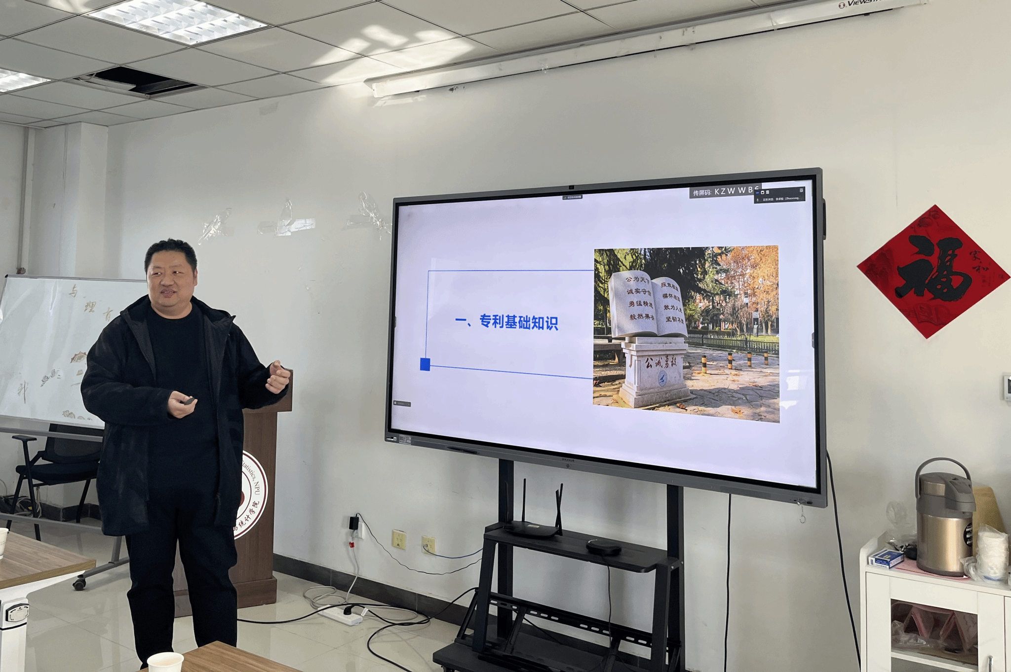 首先,都琳介绍了学院专利成果等方面的基本情况,并表达了对专利授权和成果转化的迫切需求。接下来,顾潮琪围绕专利基础知识、高价值专利布局、专利信息利用、专利文件撰写和学校相关政策5个方面对于专利申报过程进行了详细讲解与阐释。他重点强调了专利申报过程中需要注意的问题和重要时间节点。通过多个典型案例的讲述,深入浅出地介绍了进行前瞻性布局的方法表达了数学基础理论和算法与实际应用场景相结合的重要性,并给出高效推进专利授权进度的意见与建议。最后,参会师生就感兴趣的问题进行了深入讨论与交流。
