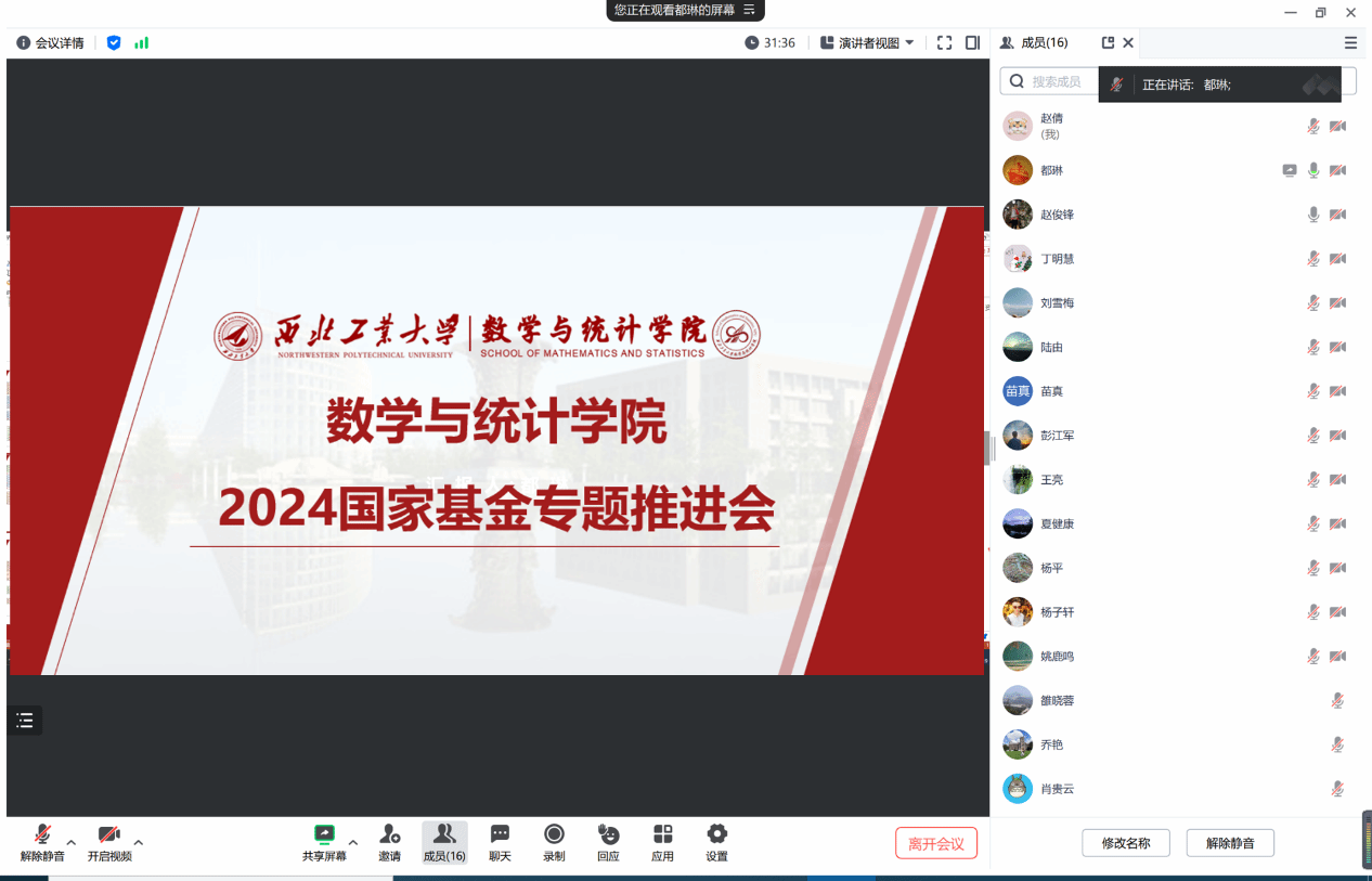 为切实提升学院2024年度国家自然科学基金申报质量,加强有组织科研,全面守好基金出口关,2月19日, *成人片 召开了2024年度国家自然科学基金专题推进会,本次会议主要面向首次申请基金的青年教师。学院副院长都琳教授、系主任陆由、赵俊峰、王亮及近20位青年教师线上参会,会议由都琳主持。