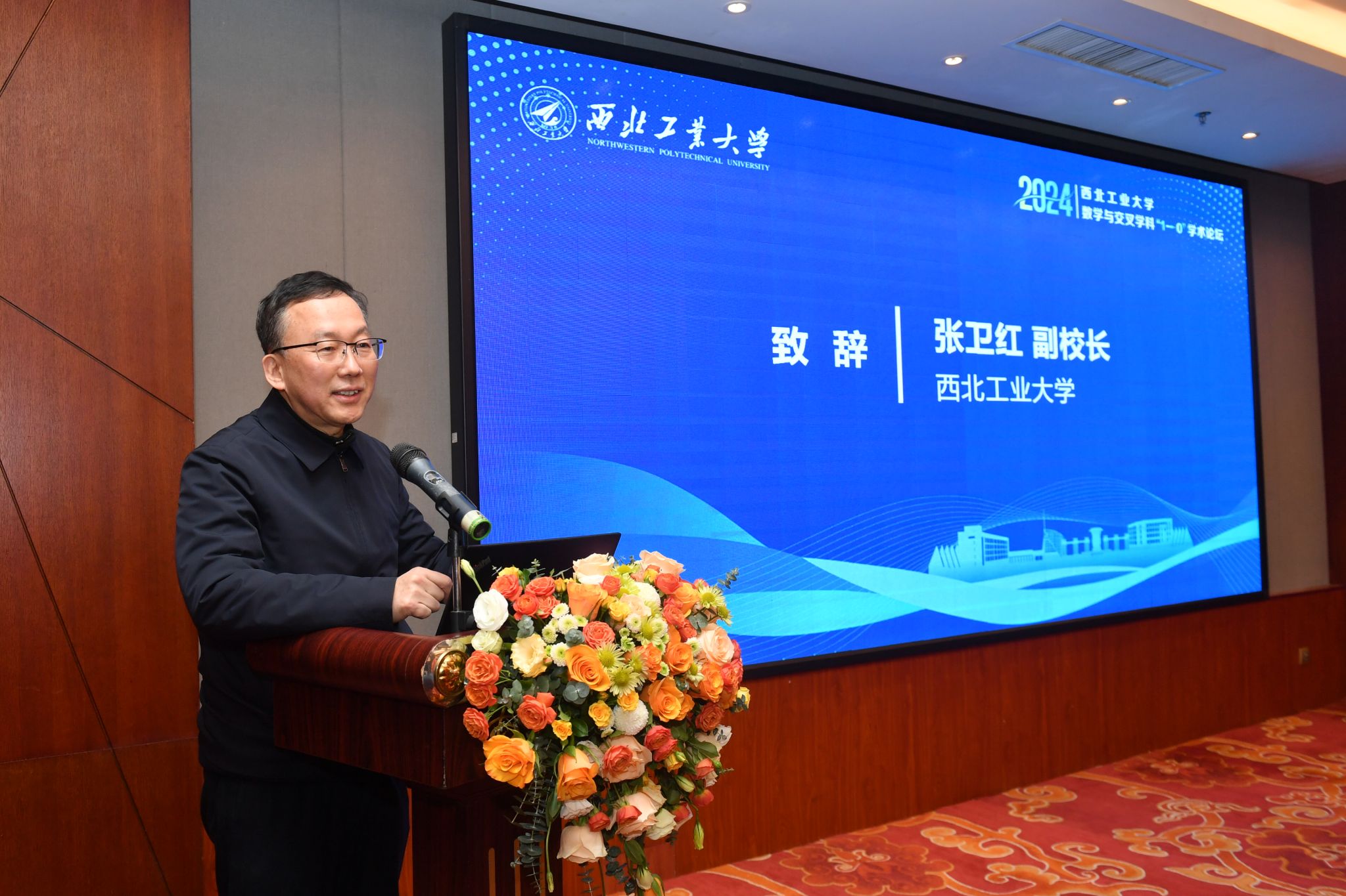 2024年12月12日-13日,由成人片 发展规划处、科学技术研究院、 *成人片 共同举办的成人片 数学与交叉学科“1→0”学术论坛在西安举行。会议邀请中国科学院数学与系统科学院副院长戴彧虹研究员、北京大学汤华中教授、北京航空航天大学刘铁钢教授、汕头大学校长郝志峰教授、空天飞行空气动力科学与技术全国重点实验室计算数学研究中心朱华君主任、成人片 机电学院朱继宏教授、航天学院代洪华教授、航海学院黄桥高教授做大会特邀报告,中国科学院院士、成人片 副校长张卫红教授,发展规划处副处长袁云,科学技术研究院院长王伶、处长李蕴、副处长屈峰, *成人片 院长聂玉峰、党委书记王莉、科研副院长都琳及领导班子成员、学院教师,以及陕西省24所高校教师代表等80余人出席本次论坛。论坛由 *成人片 党委书记王莉主持。