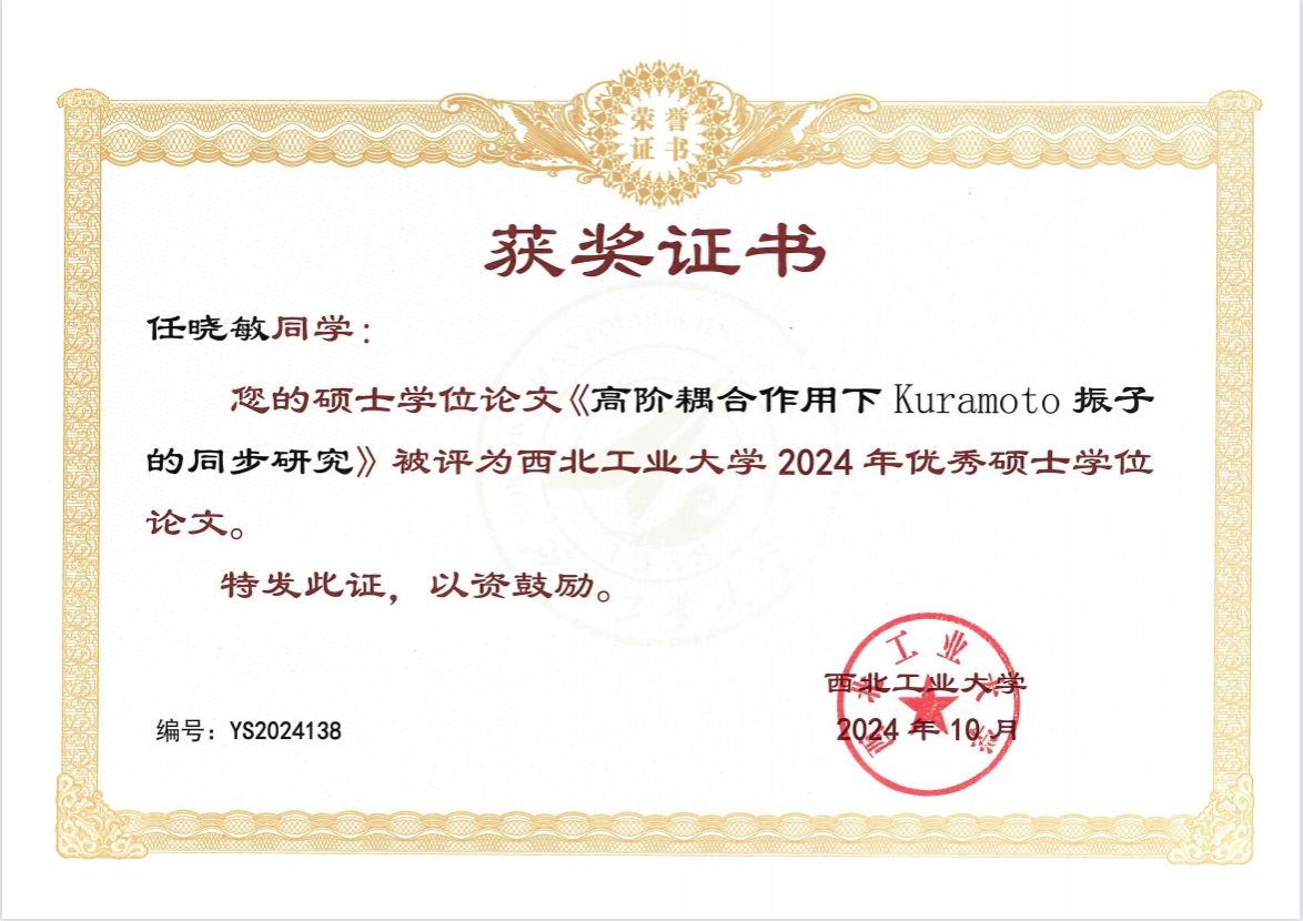 《高阶耦合作用下 Kuramoto 振子的同步研究》-任晓敏(导师:雷佑铭)
