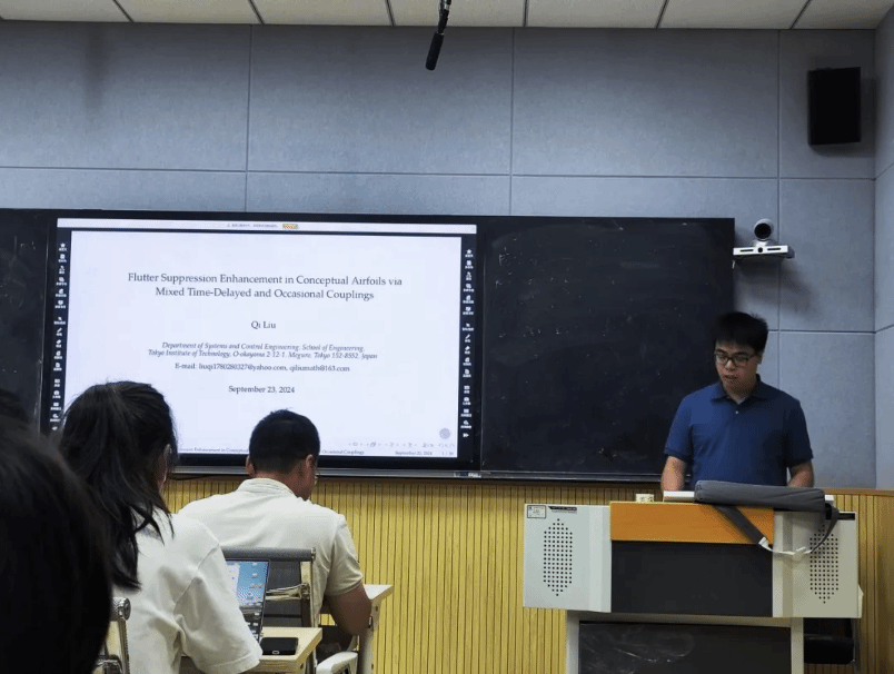 2024年9月23日,东京工业大学刘琪特任研究员受成人片 许勇教授邀请,于长安校区理学院315会议室作题为“Flutter Suppression Enhancement in Conceptual Airfoils via Mixed Time-Delayed and Occasional Couplings”的学术报告。20余位师生参与本次报告,报告由李永歌副教授主持。