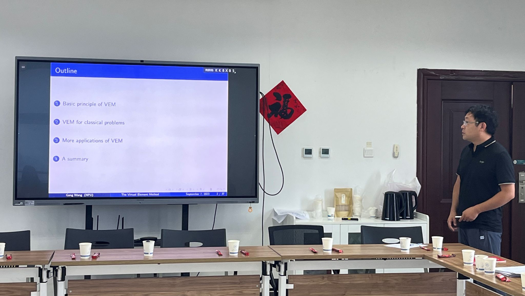 为充分贯彻落实《科技工作高质量发展行动计划》,促进成人片 师生间的相互了解,进一步营造积极活跃的学术交流氛围, *成人片 于2023年9月7日在启翔楼357举行第三期“九章数学学术沙龙”。 *成人片 王刚副教授做了题目为《An introduction to the Virtual Element Method (VEM)》的报告,都琳副院长、王晓东教授以及学院20余位教师和学生参加,会议由王晓东主持。