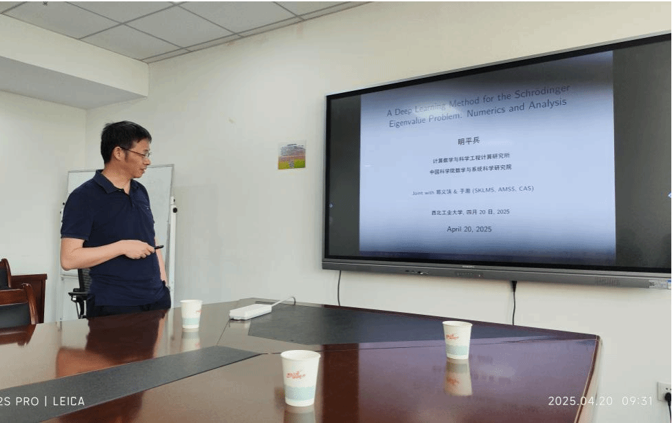 明平兵以《A deep learning method for Schrödinger eigenvalue problem: numerics and analysis》为题,介绍了一种用于计算Schrödinger 算子特征值的新型深度学习方法。所提出的方法将一种新开发的损失函数与一种创新的神经网络架构相结合,该架构同时还融入了问题的先验知识。这些改进使得该新型深度学习方法能够处理高维问题、以及不规则有界区域问题。随后,明平兵列出了用所设计的算法来计算各类Schrödinger算子的前30个特征值的数值效果,并与其他已有算法做对比,展示了其有效性。此外,报告中还详细介绍了在Barron-型空间框架下的泛化误差分析结果,以及在该框架中借助算子理论建立的相关正则性结果。作为应用,该方法可应用于分数阶薛定谔特征值问题和分数阶等谱问题等。
