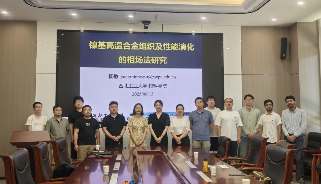 2025年6月13日,应 *成人片 副院长都琳教授及王晓东教授邀请,材料学院杨敏副教授在海天苑大楼E103会议室作了题为《镍基高温合金组织及性能演化的相场法研究》的学术报告。学院近20位师生参会共探学术前沿,报告由都琳主持。