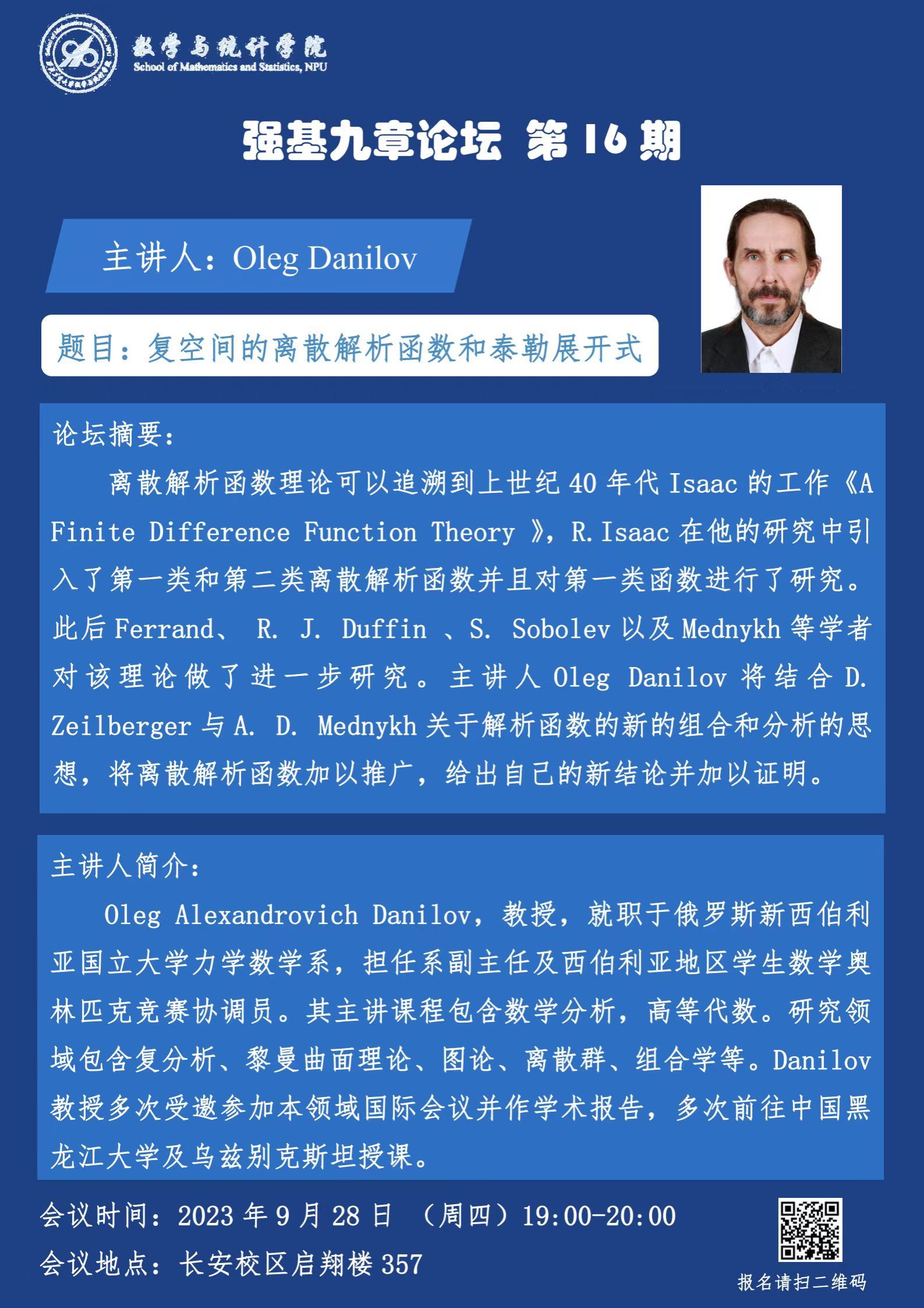 【论坛通知】强基九章论坛第16期