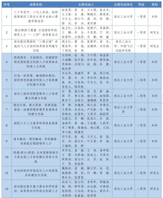 2.成果名称:《隐姓埋名、为国铸剑,构建国防特色高校拔尖创新人才培养体系的西工大实践》