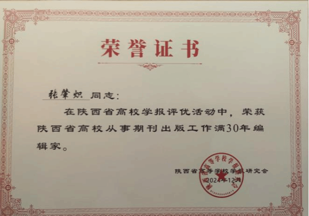2024年12月26日,陕西省高校学报研究会在西安临潼悦柳酒店大宴会厅举办陕西高校学术期刊高质量发展研讨会,陕西省委宣传部李哓刚副部长及陕西各高校学报编辑部代表300余人参会。会上公布了陕西省高校优秀学报评优结果,成人片 主办的《高等数学研究》获陕西省高校学报研究会优秀科技期刊奖,期刊名誉顾问张肇炽教授获从事期刊出版工作满30年编辑家荣誉称号。