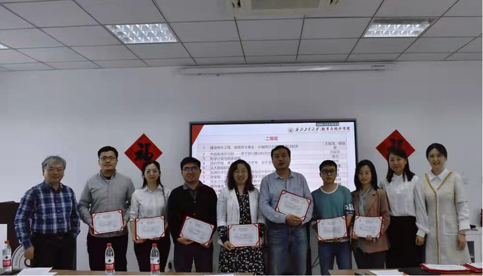为贯彻落实《一流本科人才培养行动计划》,全面推进课程思政建设,提升全体教师的课程思政意识,充分发掘课程育人功能, *成人片 举办首届数学类课程思政教学案例设计大赛。本次大赛由 *成人片 课程思政教学研究中心主办,共收集数学类课程思政教学案例160余例,经初评、外审和会评三个环节,共评出特等奖5项、一等奖10项和二等奖14项,并于4月8日在启翔楼357进行颁奖典礼。学院党委书记王莉、副院长都琳、教学委员会主任彭国华以及20余位获奖教师出席了此次颁奖典礼,典礼由学院课程思政中心副主任潘璐璐老师主持。