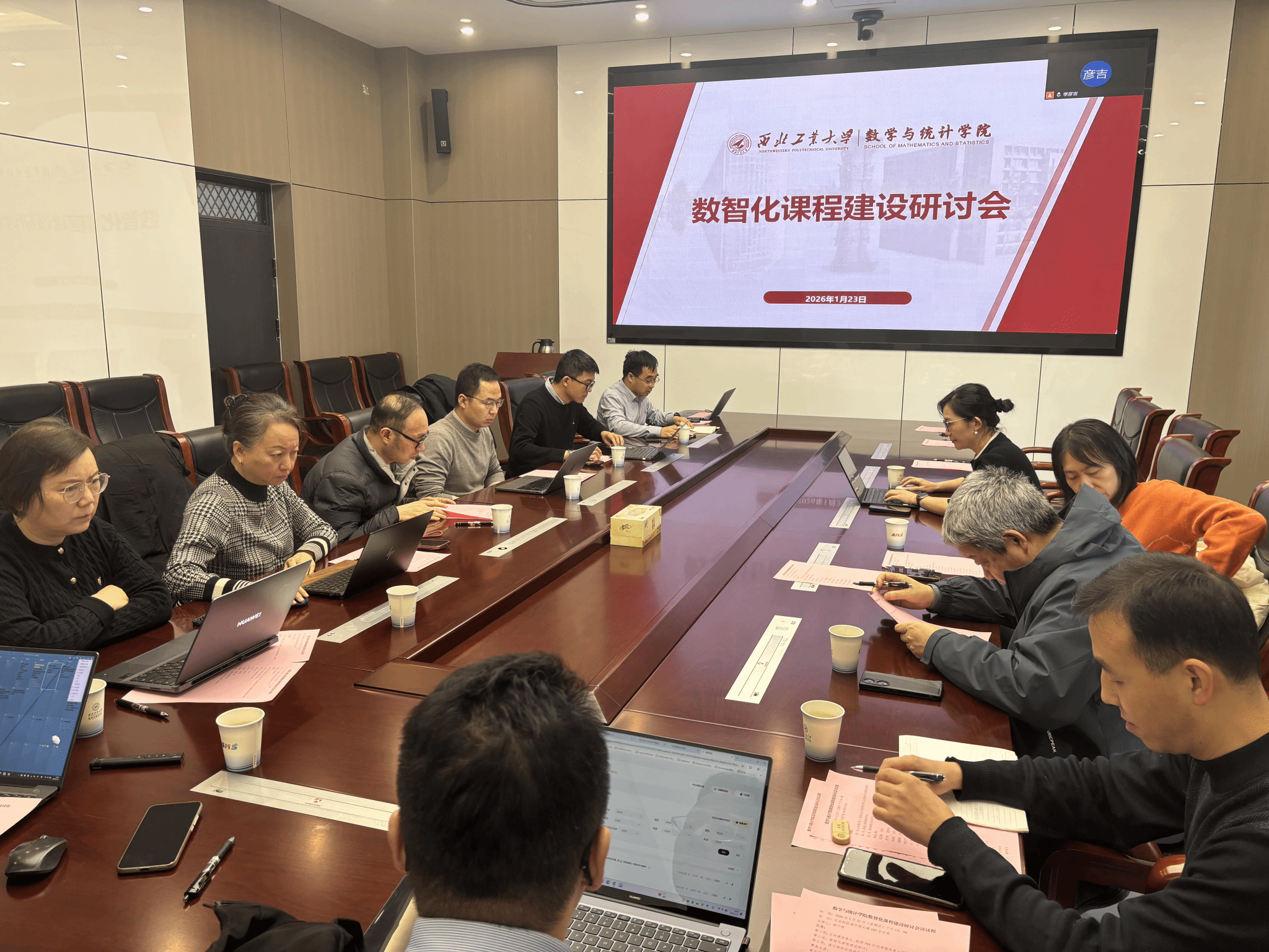 2026年1月23日下午, *成人片 在长安校区海天苑大楼103会议室召开数智化课程建设专题研讨会。院长聂玉峰、副院长郭千桥、5位公共课负责人及14门101计划课程负责人参会。会议由副院长郭千桥主持。