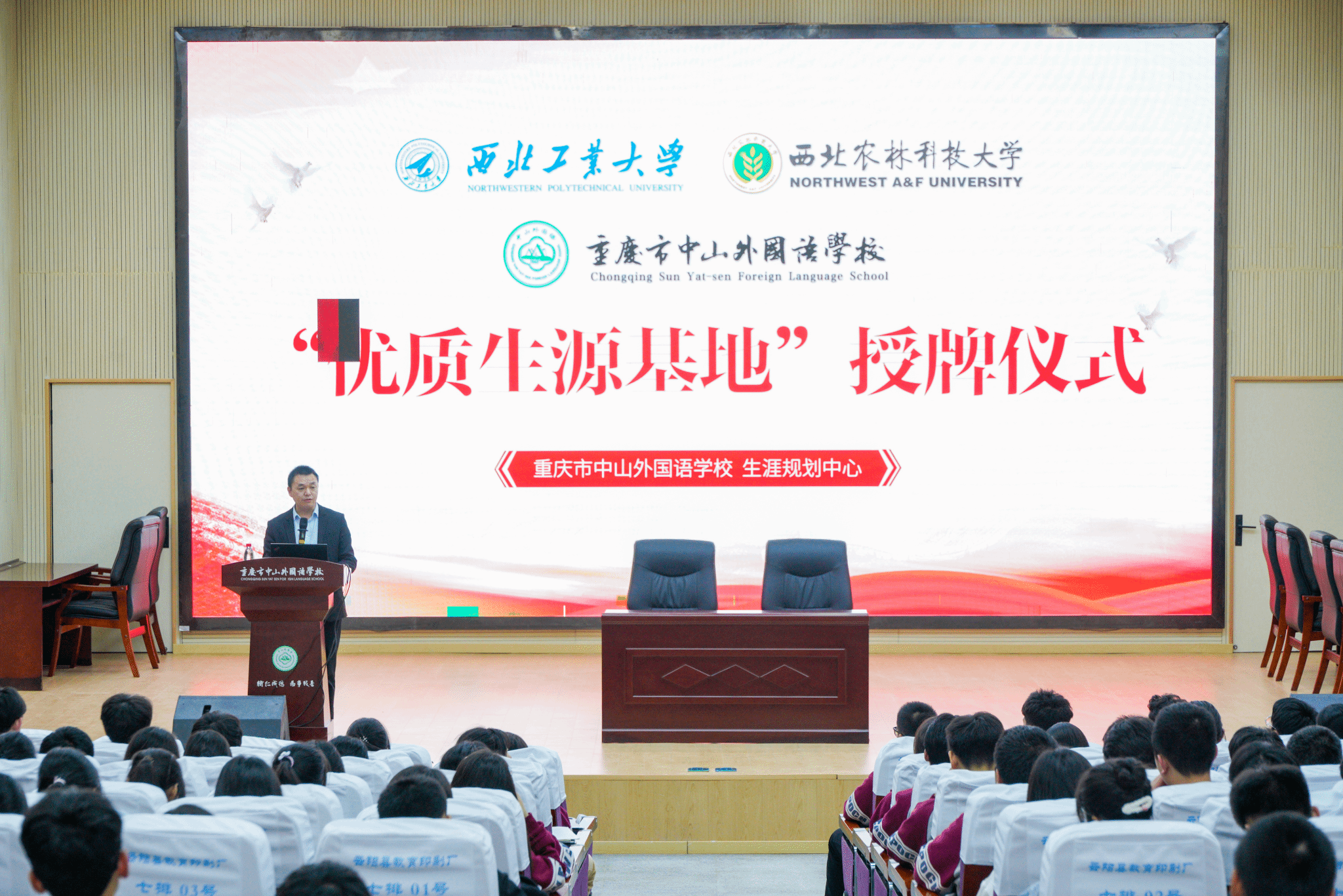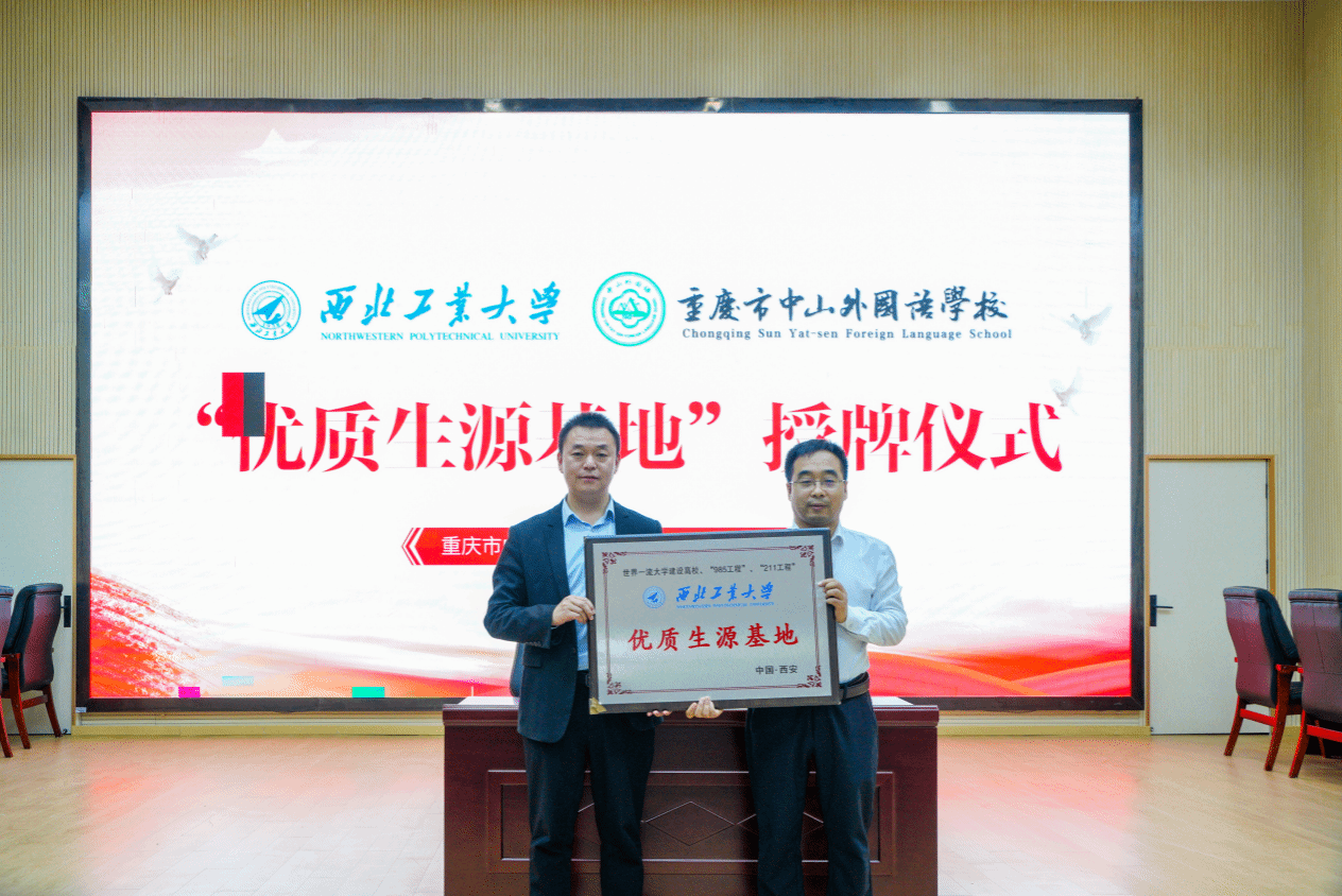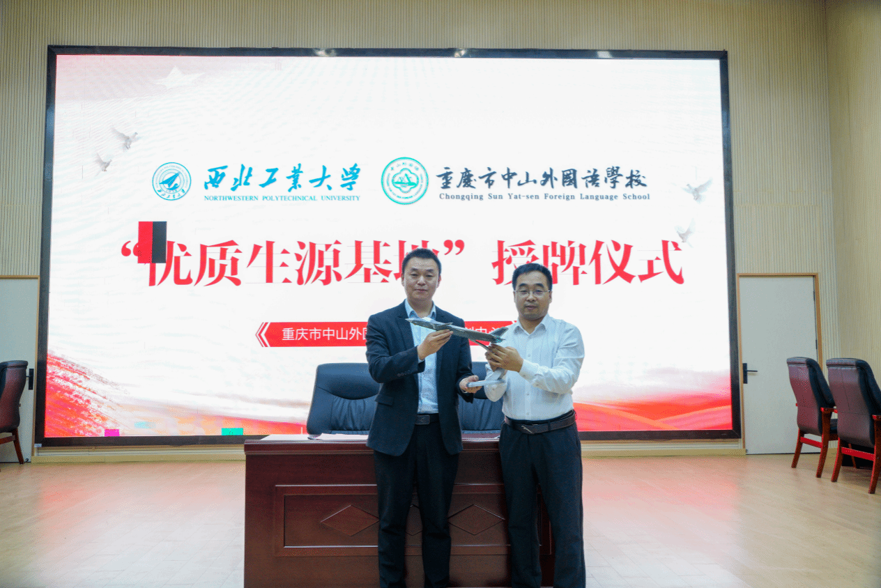 10月26日、27日,招生组分别赴巫山中学、重庆市中山外国语学校,与两校签订“优质生源基地”协议,授牌并赠送J-20模型。重庆巫山中学罗平校长、郝伟副校长,重庆市中山外国语学校杨武副校长等参加了授牌仪式。招生组组长林伟以《振翅翱翔》为题分别为两校学生介绍了成人片 的基本概况、办学特色和招生政策,鼓励巫山中学、重庆市中山外国语学校学子积极投身祖国航空、航天、航海事业!